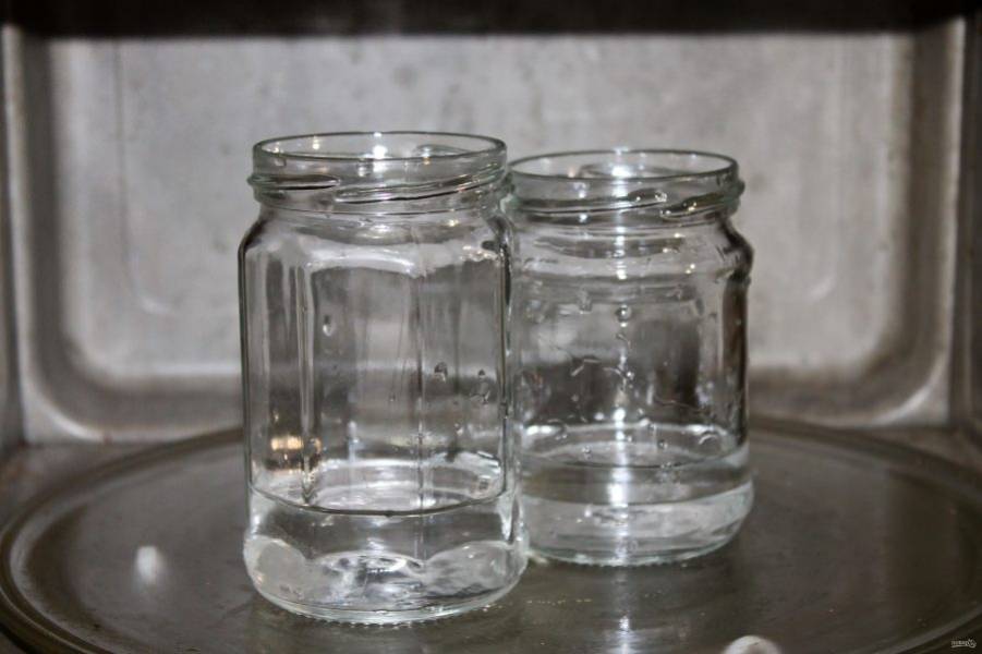 Банки и крышки тщательно вымойте. Железные крышки кипятите в течение 5 минут, банки стерилизуйте любым удобным способом.