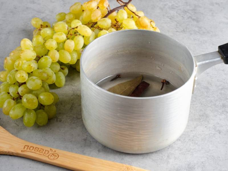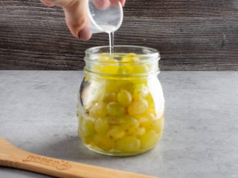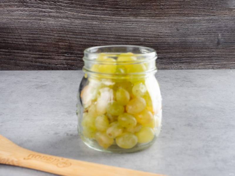 В стерилизованную банку положите чистые ягоды винограда.