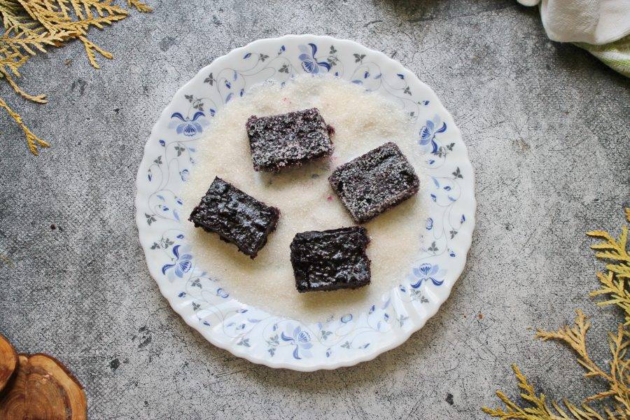 Готовый маринад порежьте на конфеты. При желании обваляйте их в сахаре. После этого подавайте к столу.