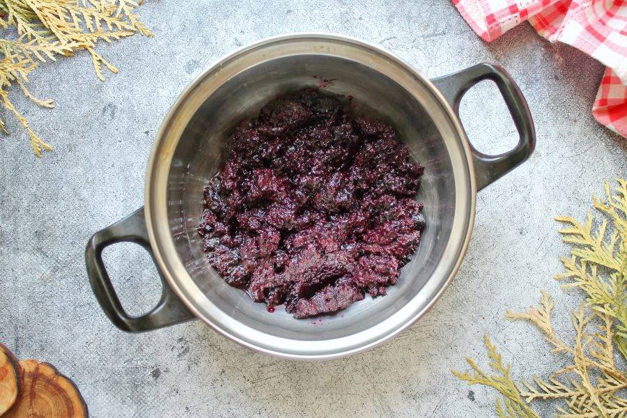 Отвар слейте и оставьте остывать. Ягоды пробейте блендером до однородности. При желании можно протереть массу через сито, но я не стала.