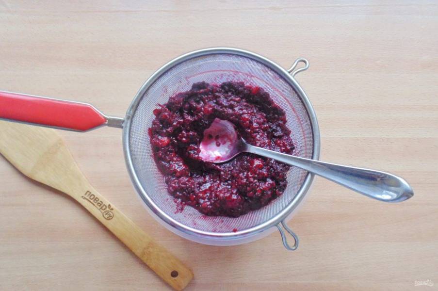 Ягодный отвар процедите через дуршлаг в другую посуду, а ежевику протрите, избавляясь от твердых косточек.