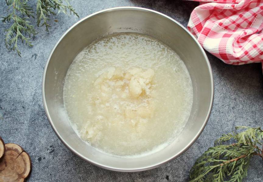 В горячую массу выложите набухший желатин и размешайте до его полного растворения.