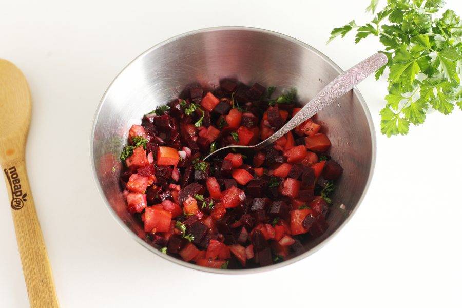 Все перемешайте. Марокканский свекольный салат готов. Подавайте его сразу к столу.