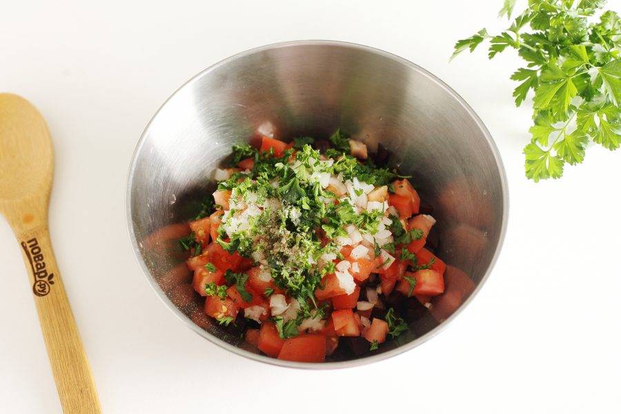 Мелко порубите петрушку, добавьте масло, соль по вкусу и молотый перец.