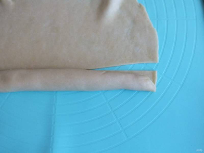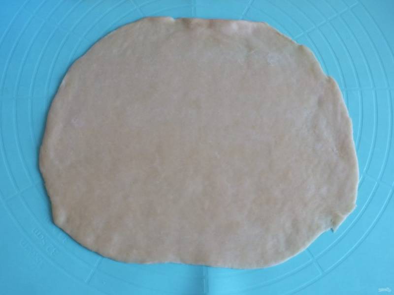Раскатайте тонкий пласт, толщиной 3-4 мм.