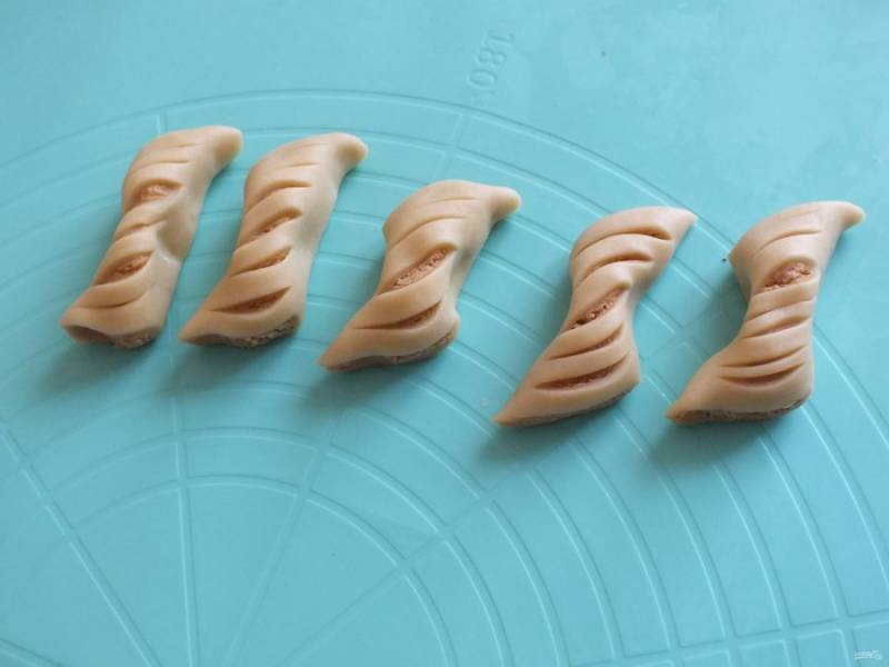 Сделайте подобные заготовки из оставшегося теста и арахисовой пасты.
