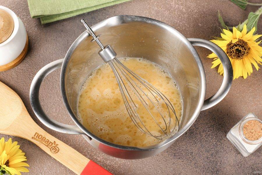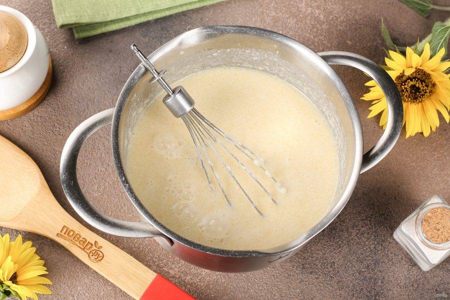 Хорошо разогрейте сковороду и первый раз смажьте её растительным маслом. Процесс выпекания блинчиков не отличается от обычных. Как только блин подрумянится, переверните его.