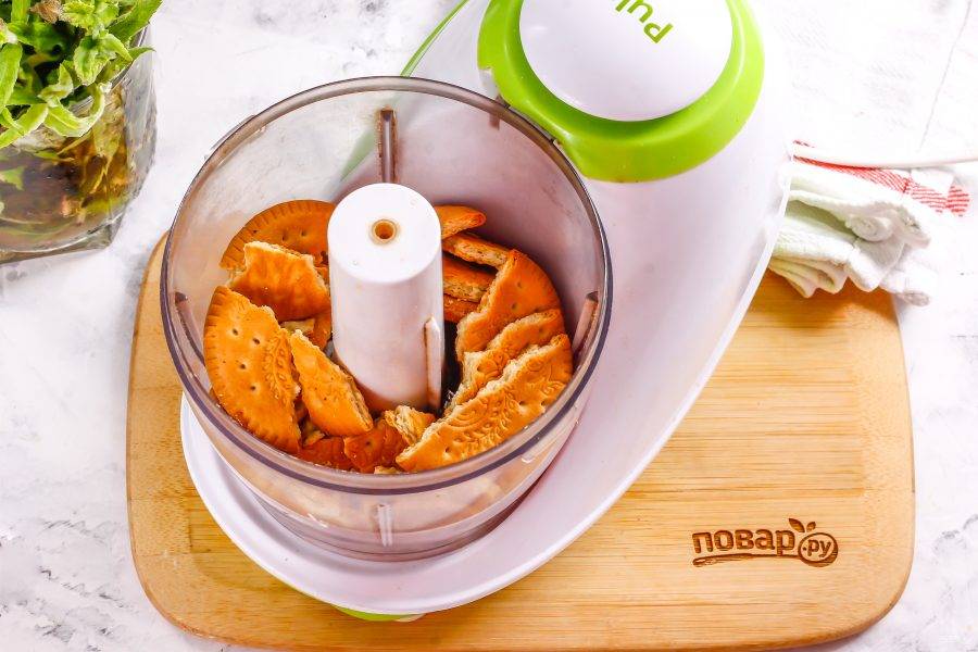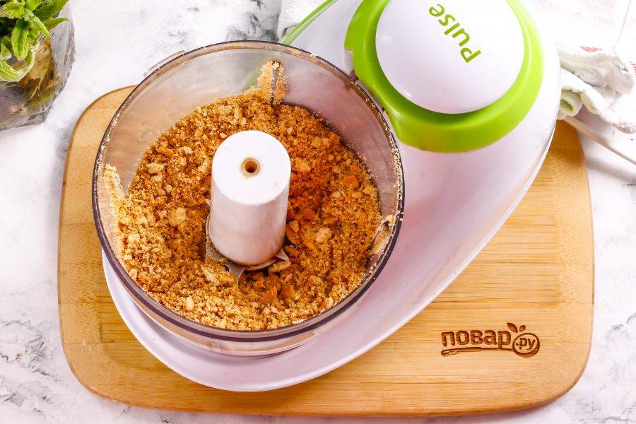 Пробейте печенье в крошку примерно 2-4 минуты, стараясь, чтобы она получилась однородной, без крупных кусочков.