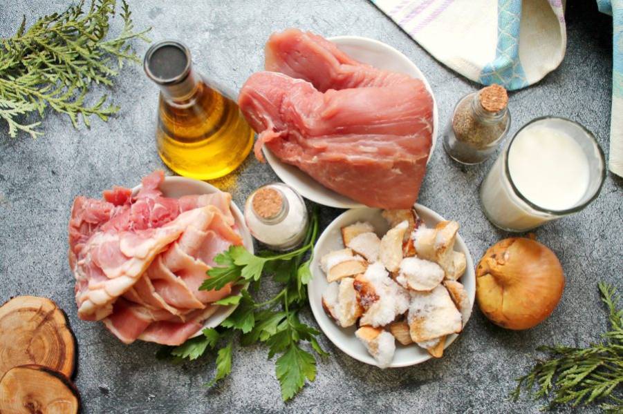 Подготовьте все необходимые ингредиенты для приготовления медальонов с грибами.