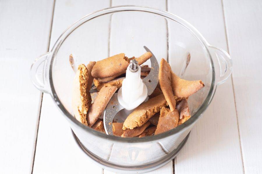 Остатки коржей выложите в чашу блендера.