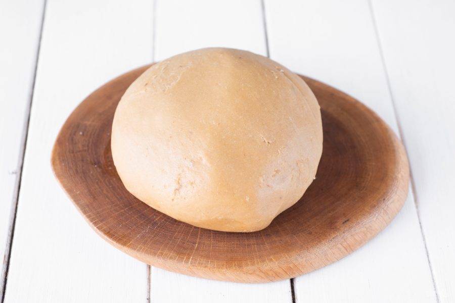 Замесите тесто мягкое, эластичное, приятное в работе, оно совсем чуть-чуть липнет к рукам. Тесто оберните в пищевую пленку и оставьте на столе на 20 минут.