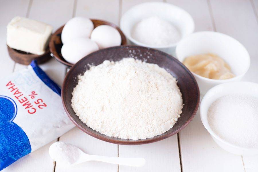 Все ингредиенты сразу же выложите на стол. Всю муку заранее просейте.