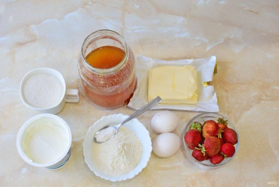 Видео рецепт "Медовик с клубникой и сметанным кремом"