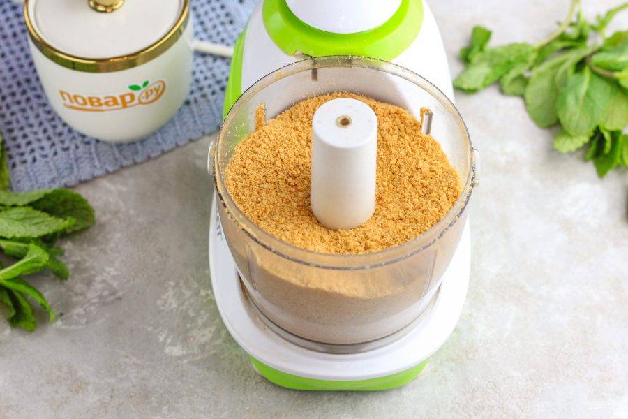 Измельчите остатки в крошку при помощи подручной техники или в пакете при помощи скалки.