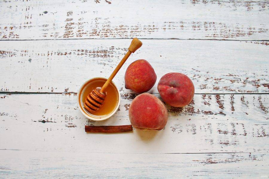 Подготовьте все необходимые ингредиенты для приготовления медовых персиков.