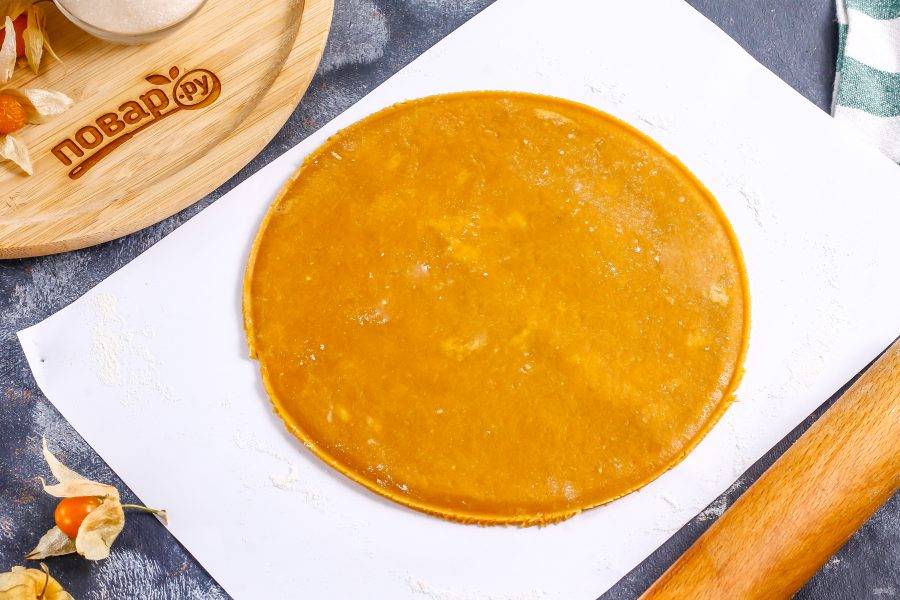 Таким образом испеките все коржи. Я не выпекаю обрезки от коржей отдельно, а раскатываю их в полноценный корж. На присыпку торта отложите два самых неприглядных коржа — они все равно измельчатся в крошку.
