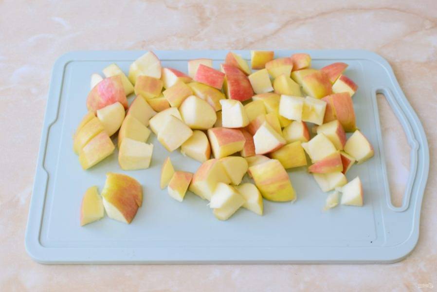 Яблоки тщательно помойте и обсушите. Вырежьте из них сердцевину. Нарежьте яблоки крупными кубиками.