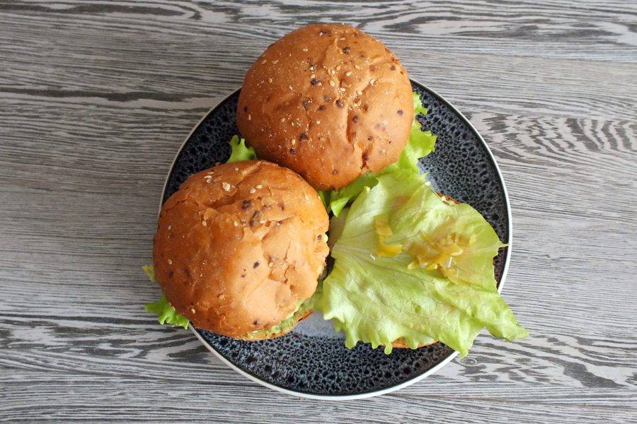 Бургеры готовы. Перед подачей подогрейте их в микроволновой печи.