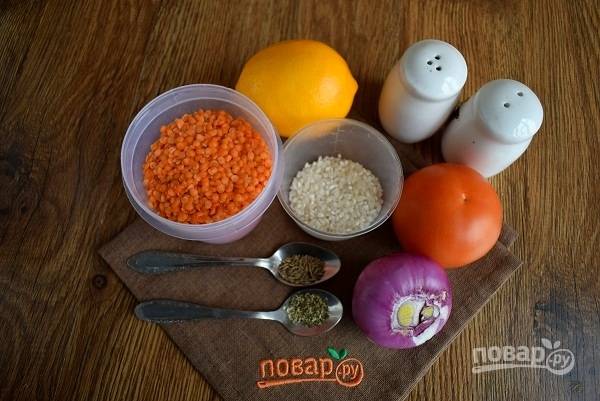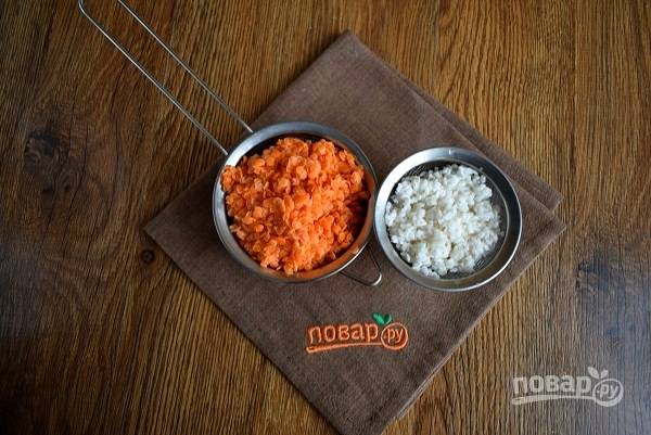 Чечевицу и рис промойте в прохладной воде, залейте на 5 минут водой, откиньте на сито.