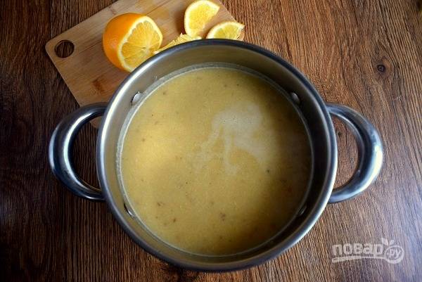 Выложите все в кастрюлю с горячей водой или бульоном, готовьте в течение 15-20 минут до готовности чечевицы. Пробейте блендером до состояния пюре, посолите по вкусу, доведите до кипения, снимите с огня.