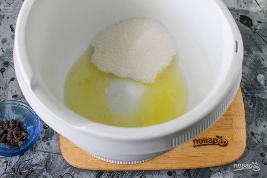 Аккуратно разбейте куриные яйца и отделите белки от желтков, желтки в рецепте не понадобятся. Влейте белки в чашу миксера, всыпьте соль и сахарный песок. Если не уверены в качестве яиц, то сначала взбейте белки со щепоткой соли в пышную пену, затем понемногу добавьте сахарный песок.