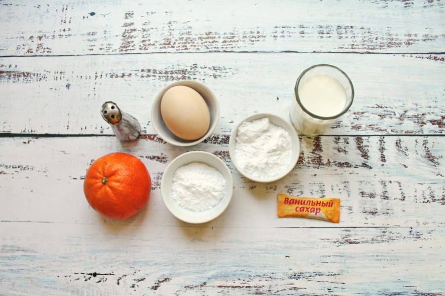 Подготовьте все необходимые ингредиенты для приготовления меренгового рулета с мандаринами.