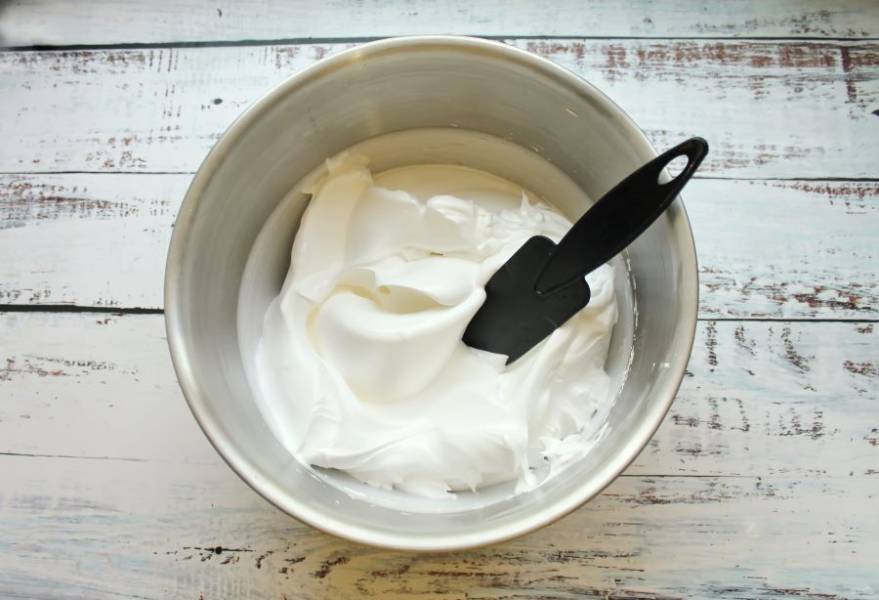 Добавьте в меренгу крахмал и аккуратно перемешайте.