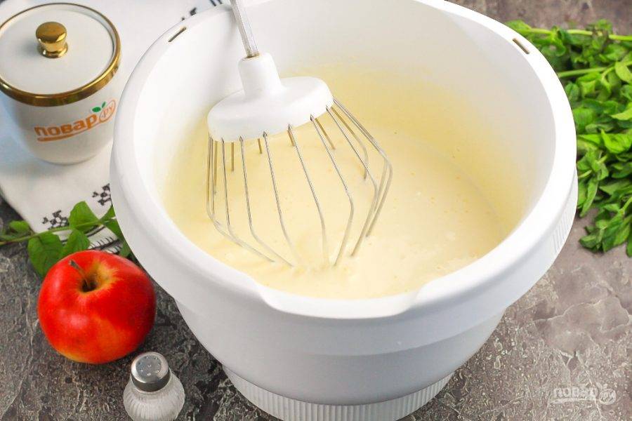 Взбейте все на самом высоком режиме техники примерно 3-4 минуты. Важно взбить до побеления пены, но не перевзбить, иначе яичная масса расслоится и пирог не получится.