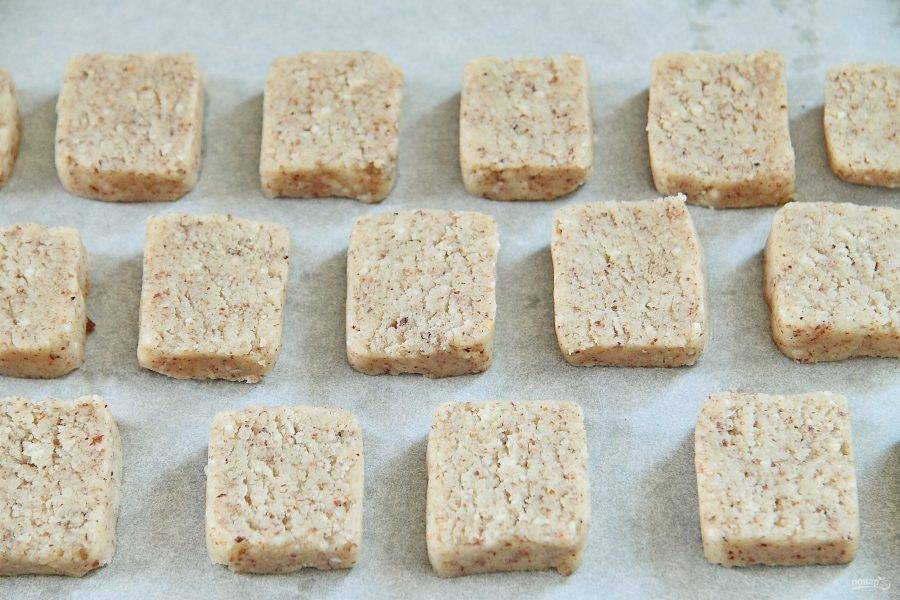 6. Сформируйте из него колбаску и нарежьте ее на кусочки, толщиной около 5-7 мм.
