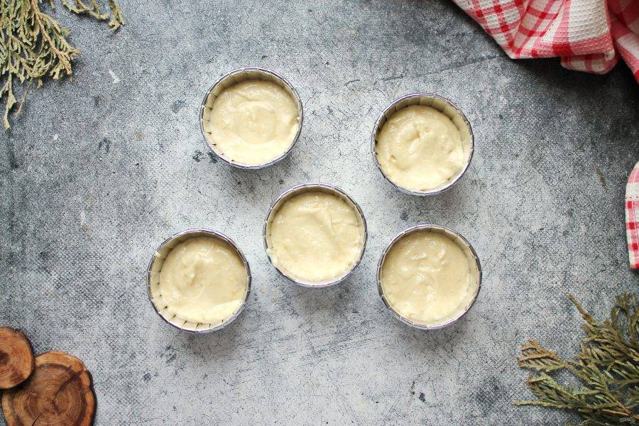 Заполните бумажные формочки для капкейков на 3/4 высоты.