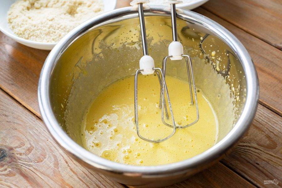 Миксером взбейте эти ингредиенты до заметного посветления яичной смеси.
