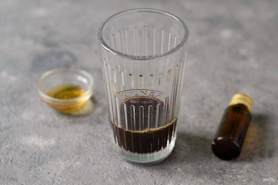 На дно стакана налейте сироп и добавьте миндальный экстракт. Влейте эспрессо и аккуратно смешайте с сиропом.