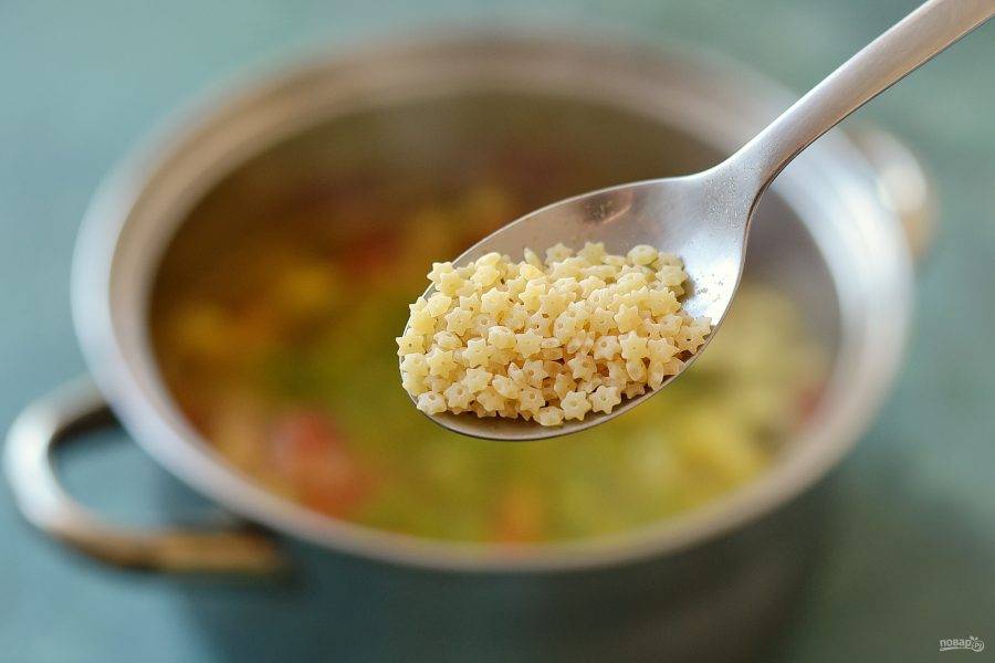 Влейте бульон, доведите до кипения. Посолите по вкусу. Варите на минимальном огне 30 минут.