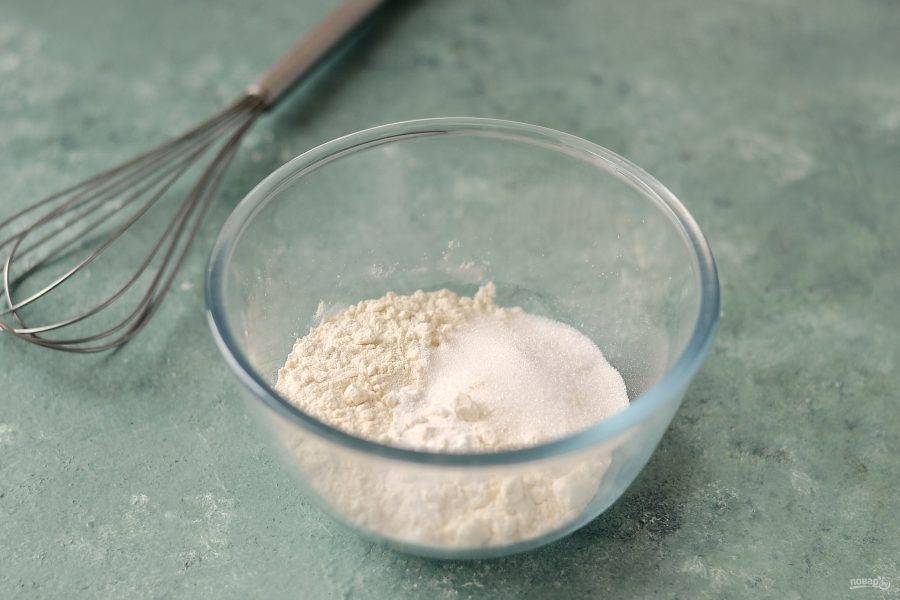 Просейте муку, добавьте разрыхлитель, перемешайте.