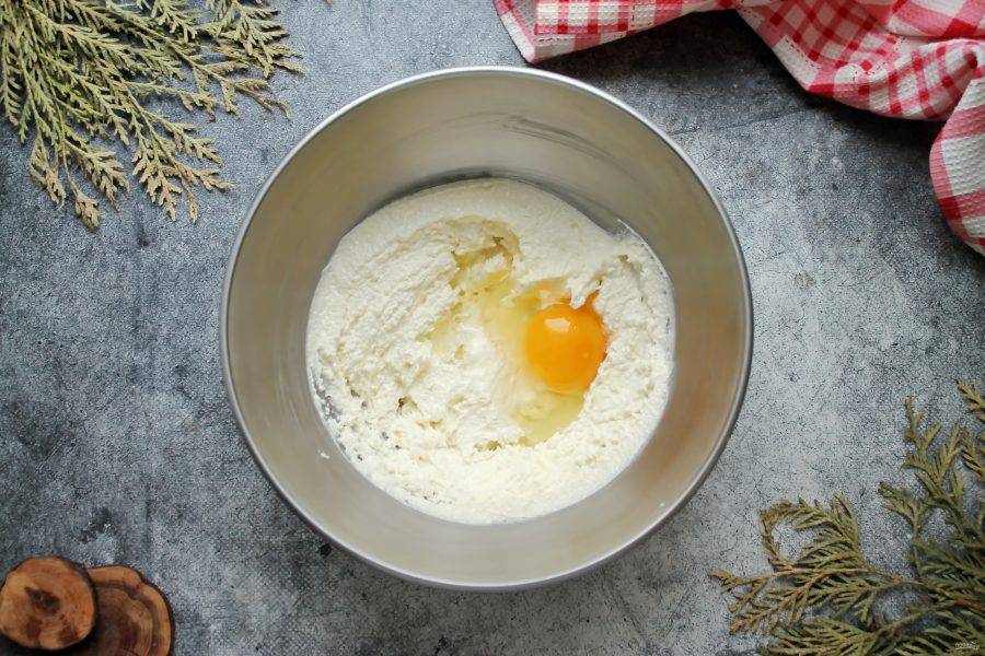 Добавляйте в масло по одному яйцу, каждый раз хорошо взбивая.