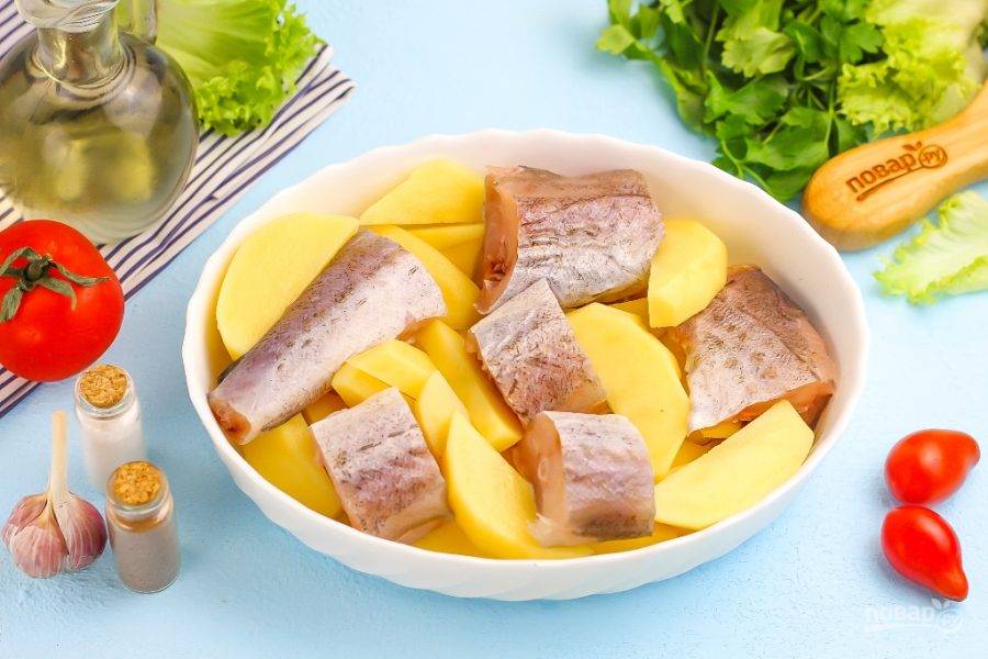 Минтай в духовке с картофелем