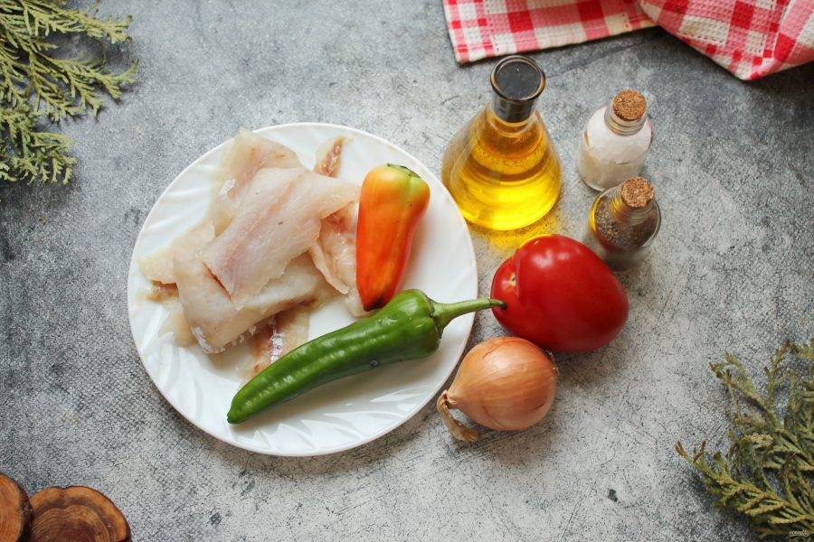 Подготовьте все необходимые ингредиенты для приготовления минтая с перцем в духовке. Овощи вымойте и почистите при необходимости.