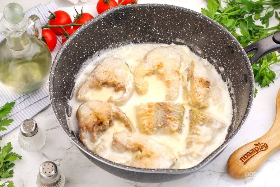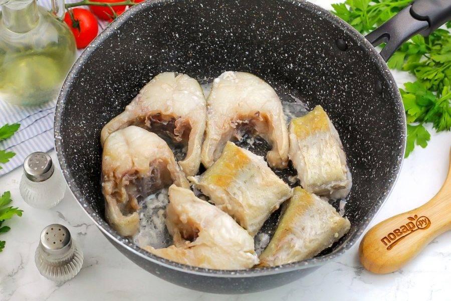 Обжарьте ломтики рыбы по 4-5 минут с каждой стороны до румяной корочки. Можно обжарить со всех сторон — как вам будет угодно.