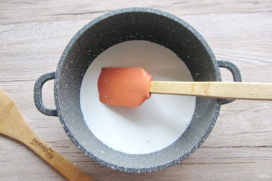 Налейте немного сливок и перемешайте с крахмалом, чтобы не было комочков.