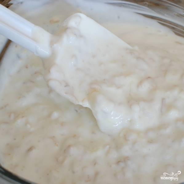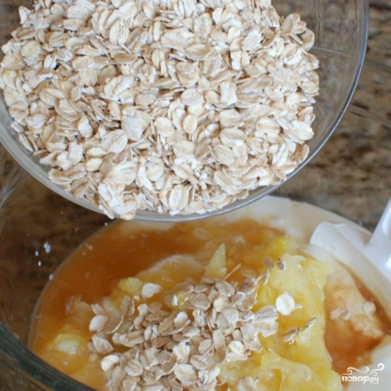 Смешиваем йогурт, ванильную эссенцию, ананасы и овсянку.