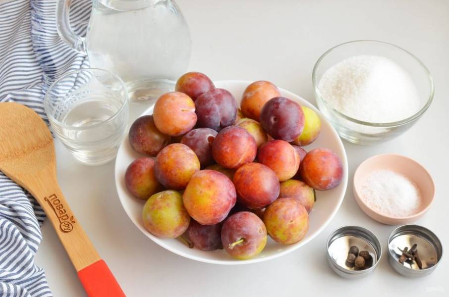 Подготовьте стерильные банки и крышки, вымойте и переберите сливы. Приступим!