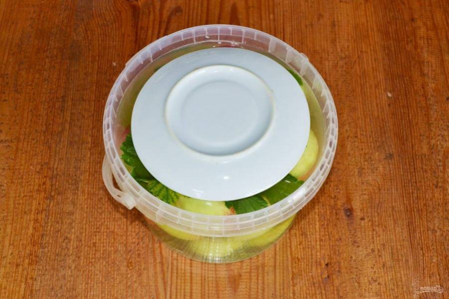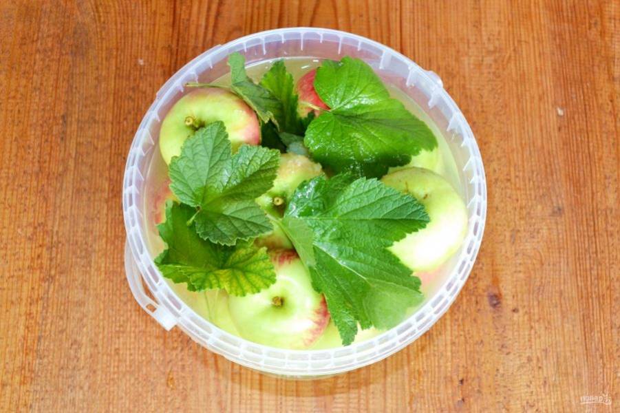 Накройте, чтобы яблоки находились в рассоле. Оставьте в тепле на 4-5 дней. По мере необходимости можно подливать оставшийся рассол. А после переместите в прохладное темное место на месяц-два.