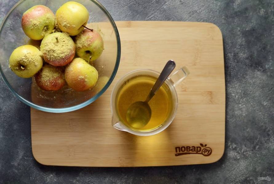 Яблоки помойте, затем выложите в форму для вымачивания.