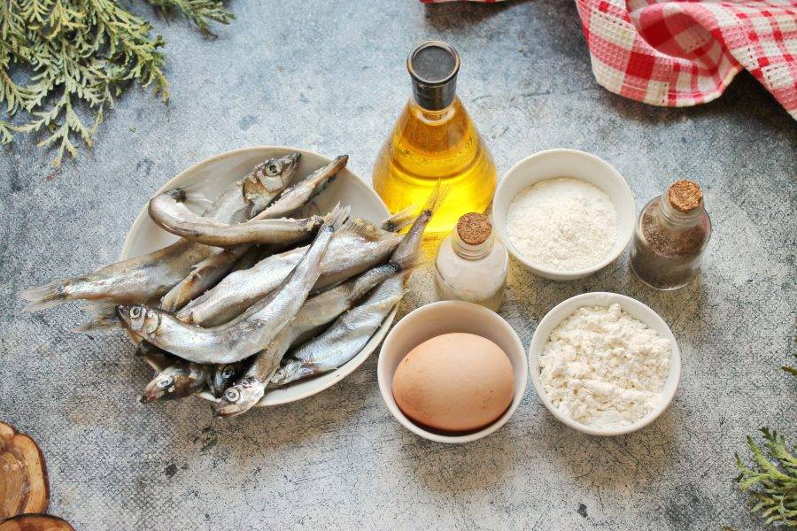 Подготовьте все необходимые ингредиенты для приготовления мойвы фри.
