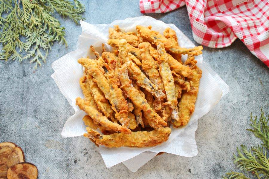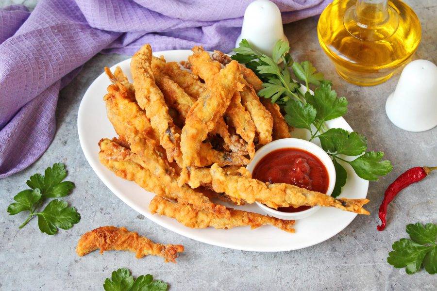 В сковороду налейте растительное масло и хорошо разогрейте на среднем огне. Выложите рыбу в один слой на расстоянии и обжаривайте мойву до золотистой корочки, примерно 2-4 минуты. После этого переложите мойву фри на бумажную салфетку, чтобы убрать лишнее масло. Обжарьте так всю мойву во фритюре и подавайте блюдо к столу.