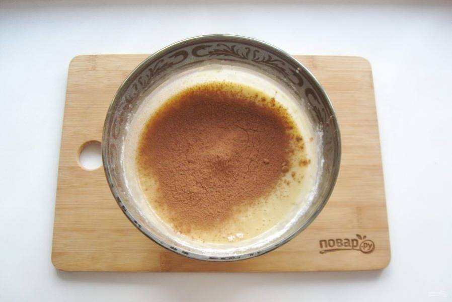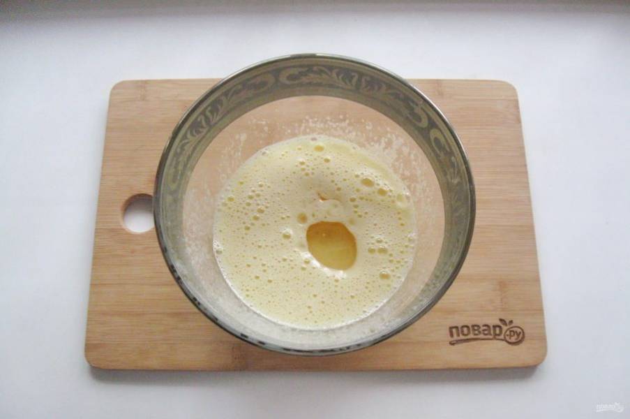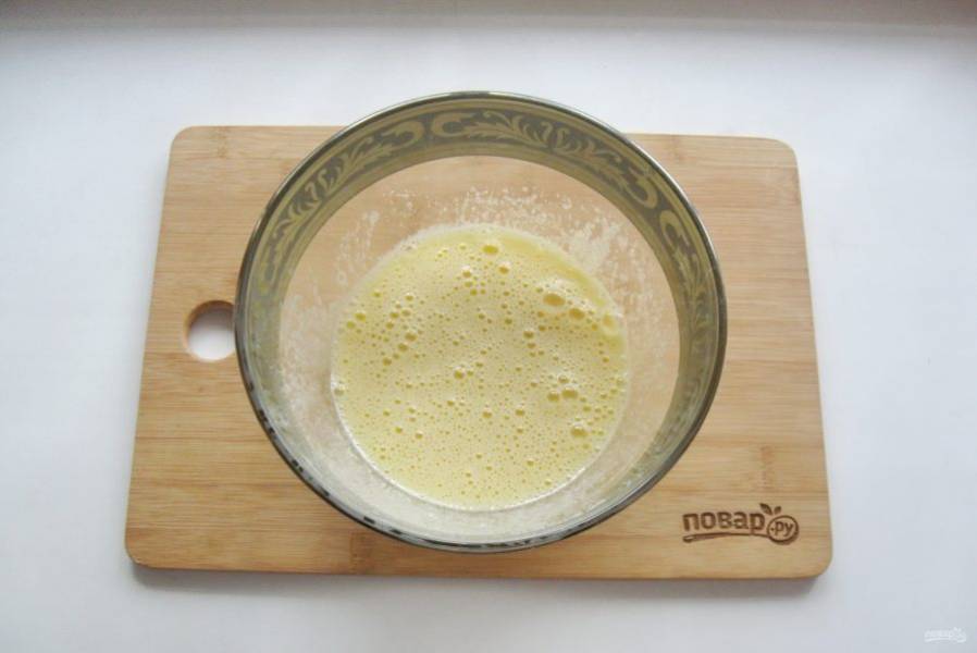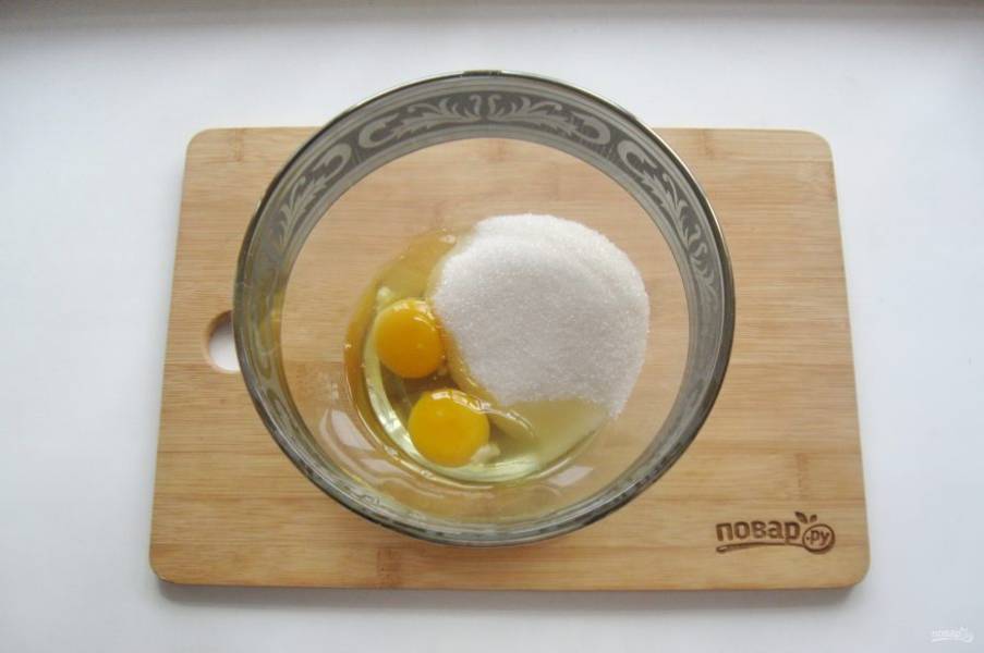 Хорошо взбейте венчиком или миксером яйца с сахаром.