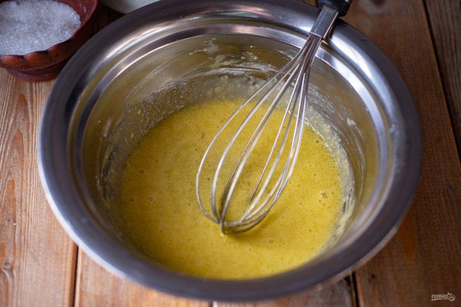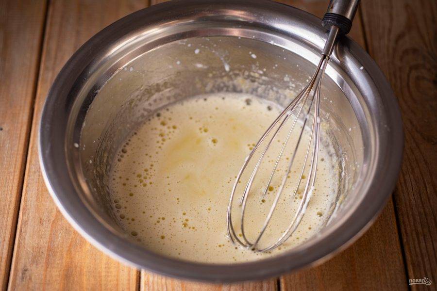 Венчиком активно перемешайте эти ингредиенты до получения однородной смеси.