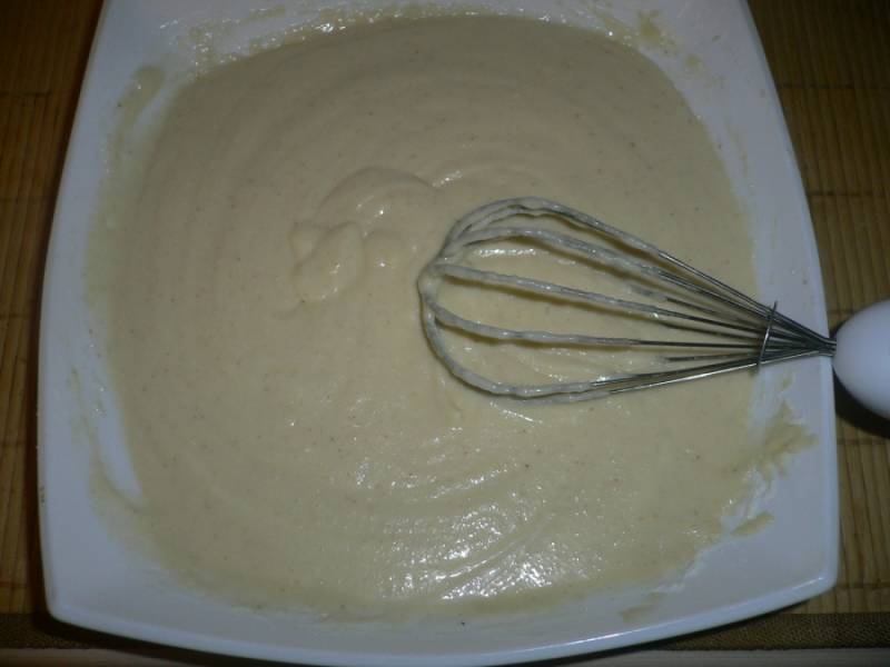 Замесить жидковатое тесто и оставить его на 30 минут для того чтобы манка набухла.