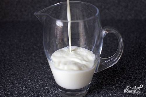 Влейте в ёмкость молоко и сливки, взбейте их вместе.