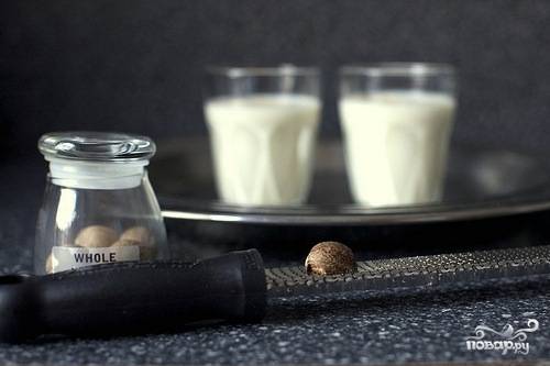 Оставьте напиток на несколько часов в холодильнике. Перемешайте и разлейте его по стаканам. Перед подачей посыпьте мускатным орехом. Приятного аппетита!